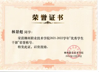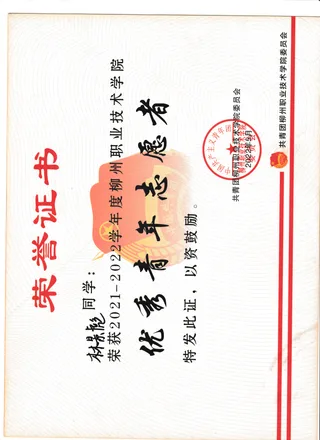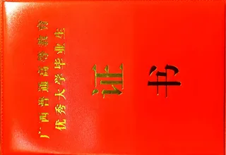 广西壮族自治区普通高等教育优秀大学毕业生证书